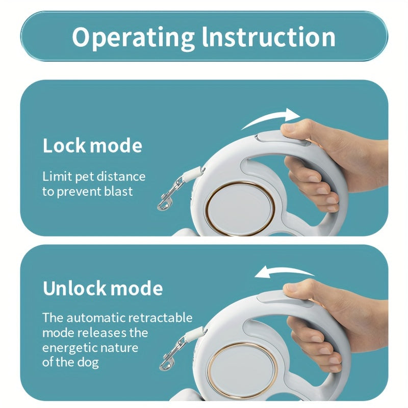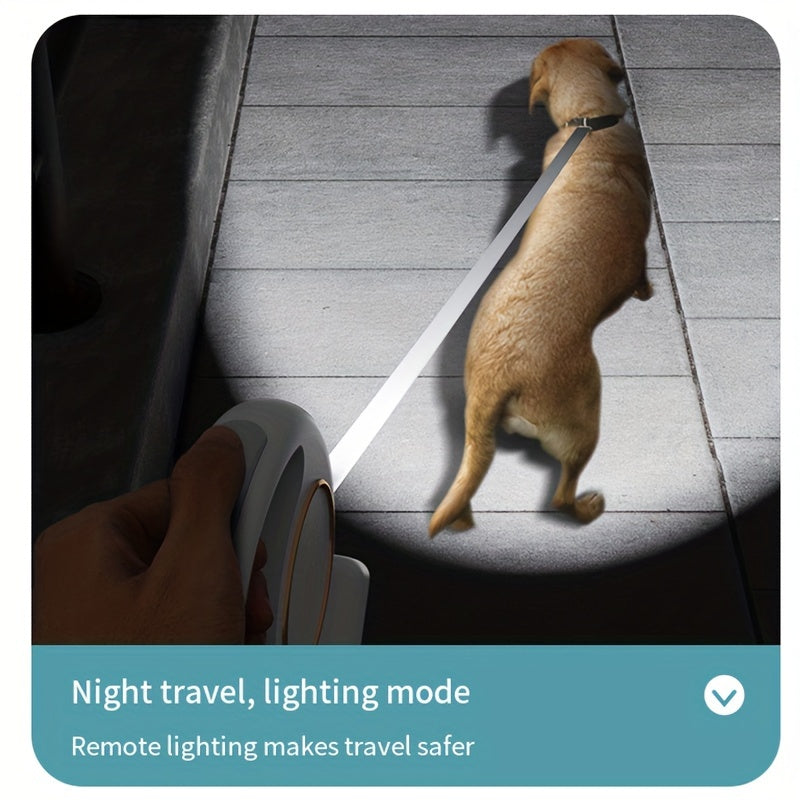 Correa Retráctil 3 m con Luz LED y Porta Bolsas – USB Recargable, Resistente hasta 100 kg
