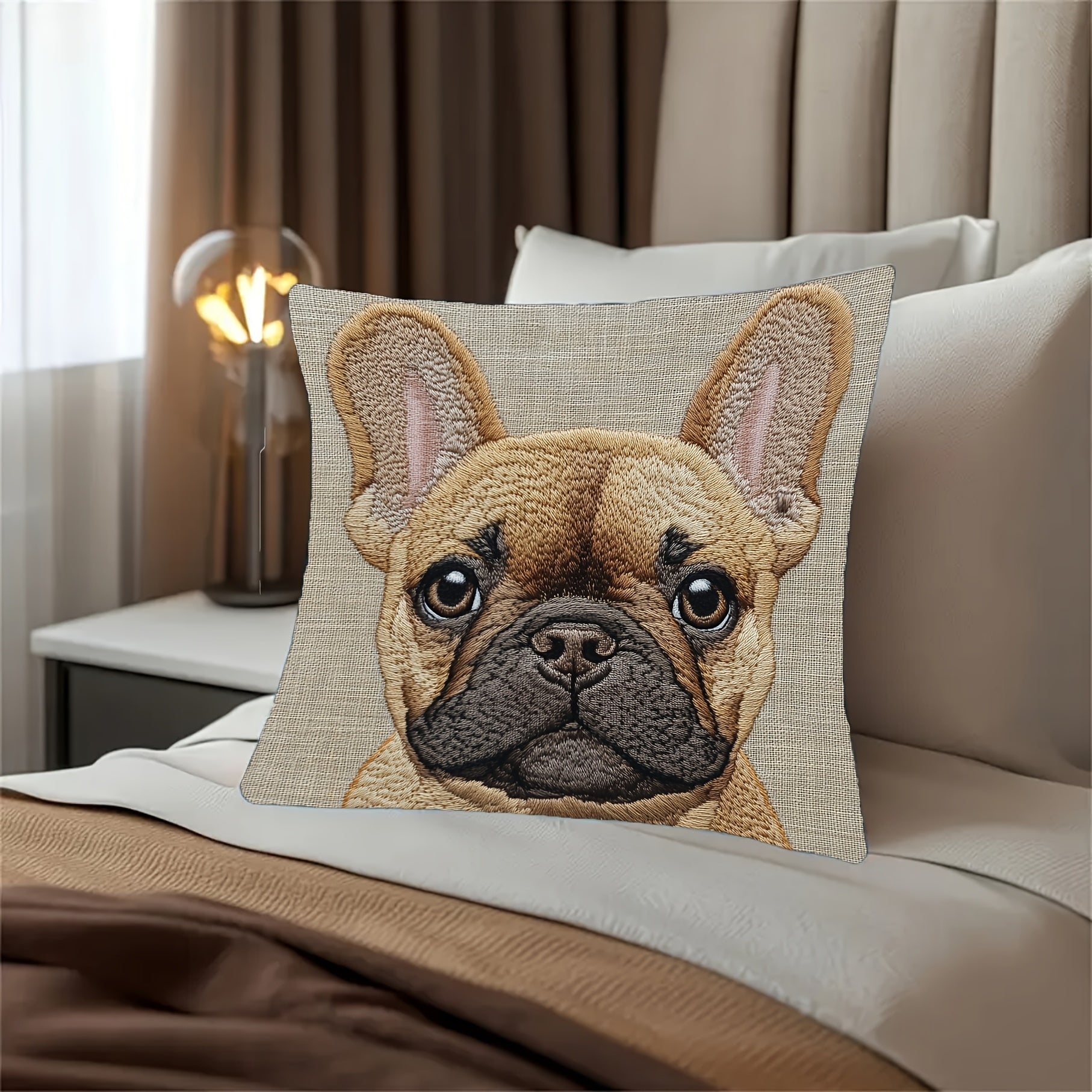 Funda de Cojín 18x18 – Bulldog Francés Bordado